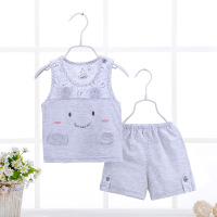 夏季婴儿衣服卡通两件套纯棉夏装无袖可开档睡衣宝宝背心套装