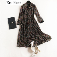 Kruidvat2017连衣裙欧洲站压褶印小碎花长袖雪纺连衣裙B075图片色