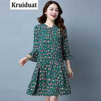 Kruidvat2017夏季新款韩版小清新碎花连衣裙喇叭九分袖中长款M018