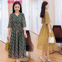 冠街 中长款V领裙子夏季2018新款女装潮学生韩版小清新碎花雪纺连衣裙S150