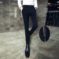 有衣有靠2017秋冬发型师裤子男士休闲裤修身弹力小脚裤加厚韩版潮流英伦西裤潮黑色