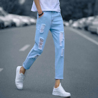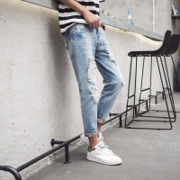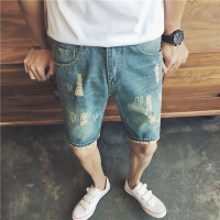 青少年五分裤修身小脚小直脚水洗常规牛仔布中腰拉链年微弹青春流行潮休闲裤