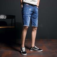 夏季旅游烫印青年五分裤合体直筒小直脚常规牛仔布拉链中低腰年微弹牛仔裤