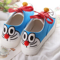 叮当猫机器猫手绘帆布鞋松糕厚底女鞋学生鞋休闲春夏2017新款可爱