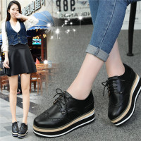 单鞋女冬季新款厚底平底休闲鞋潮系带布洛克真皮女皮鞋松糕女鞋七天无理由退货 品质保证
