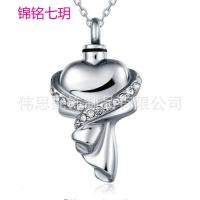 出口纪念亲人宠物狗狗狗猫骨灰盒吊坠 钛钢心形玫瑰花香水瓶项链1