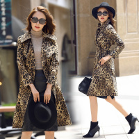 莞馨2017秋装女装豹纹印花风衣春大码外套女中长款潮