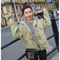 2017新款2017春季秋装新款韩版学生宽松bf连帽百搭收腰军绿色风衣短外套女