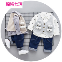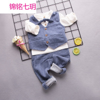 锦铭七玥男童装2018新款春装男孩儿童0-1-2-3岁韩版宝宝春秋衬衣三件套装