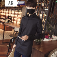 中长款衬衫男春秋季新款文艺学生宽松衬衫韩版青少年个性中长款长袖衬衣男潮黑色