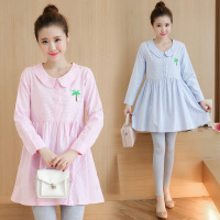 薇侣2017新品春秋新款衬衣条纹大码女装长袖娃娃领胖mm宽松孕妇连衣裙