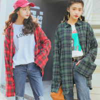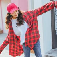 春夏F学院风格子衬衫200斤胖mm加肥加大码中长款开衫衬衣外套