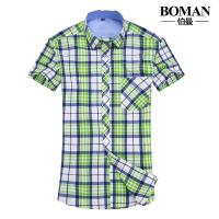 天天学生格子大码短袖纯棉衬衫胖子肥佬男士全棉加肥半袖衬衣