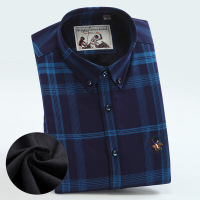 有衣有靠加绒衬衣秋冬装男士保暖衬衫加肥加大长袖格子加绒加厚修身秋冬季衬衣商务休闲衬衣蓝色