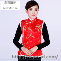 杰瑞丽莎唐装新品棉马甲女式棉外套立领加厚梅花马甲女秋冬款大红棉坎肩