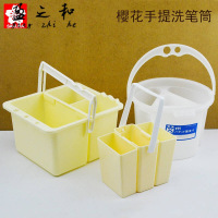 敬平折叠洗笔桶学生美术用硅胶水粉国画颜料水彩绘画便携式塑料小水桶 硅胶款 -绿色[圆款]带笔插