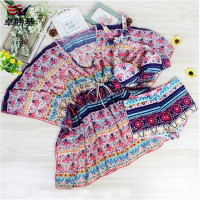 卓勝基新款卡通印花性感分体女士三件套裙式泳衣海边度假泳装吊带印花露背泳装泳衣+C杯硅胶胸垫
