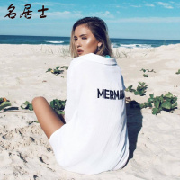 白色衬衫比基尼罩衫女沙滩外搭度假海边防晒长袖泳衣外套显瘦大码