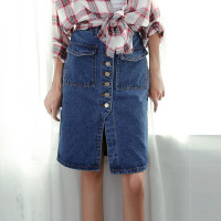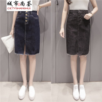 春装女装韩版高腰修身后开叉半身裙中长款牛仔包臀裙a字裙中裙潮满30元联系客服改运费