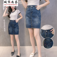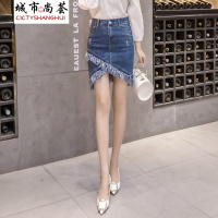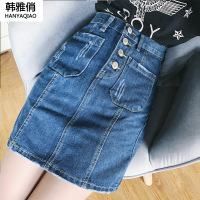 韩雅俏(HANYAQIAO)2018新品新款韩版高腰牛仔包臀裙显瘦A字短裙一步裙