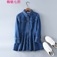锦铭七玥季女装新款韩版收腰短裙时尚显瘦单排扣牛仔连衣裙批