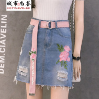 锦铭七玥弹力大码高腰牛仔裙 2018新款束腰半身裙包臀裙女士短裙
