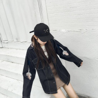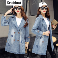 珂依舍2017秋装实拍春秋刺绣bf显瘦牛仔外套女中长款韩版宽松学生大码风衣