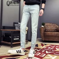 尊首新款2017九分裤男士破洞9分大码裤子男牛仔裤学生韩版修身哈伦裤青少年潮图片色