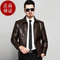 免费试穿 海宁真皮皮衣男翻领绵羊皮夹克春秋季外套男中老年爸爸装皮夹克男海宁真皮绵羊皮