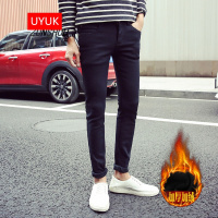 UYUK牛仔裤男2017冬季新款青少年休闲修身加絨加厚保暖牛仔长裤潮学生纯色百搭纯色裤子男