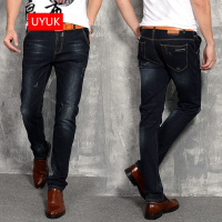 UYUK2017猫须牛仔裤男修身小脚裤青年男士裤子秋冬款弹力长裤秋天男裤黑色