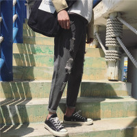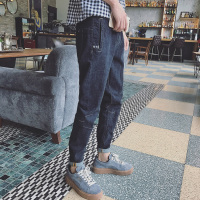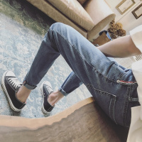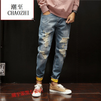 2017秋冬新款牛仔裤男韩版小脚百搭乞丐青少年修身破洞刮烂束脚裤图色