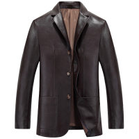 勎霸 皮衣男士 春秋季薄款 防真皮西装三粒扣皮衣男式商务休闲西服外套韩版修身爸爸装