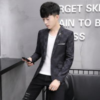 灰格西装春秋薄款男式休闲西服韩版修身小西装男西服外套