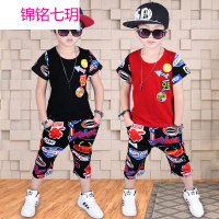 锦铭七玥夏装2018新款套装童装男孩印花短袖五分裤两件套韩版潮品厂家批发