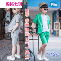 锦铭七玥男童夏装套装男孩短袖短裤礼服童装夏季休闲小西装夏款西服三件套