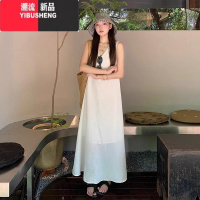 YIBUSHENG白色高级感无袖背心连衣裙子女季2024新款圆领设计气质收腰长裙
