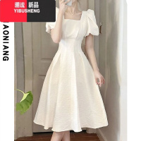 YIBUSHENG法式蕾丝v领吊带连衣裙女季度假不规则裙子白色绝美收腰中长裙