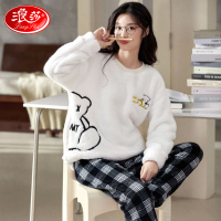 浪莎睡衣女加绒加厚珊瑚绒2025年新款法兰绒秋冬季保暖家居服套装