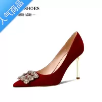 聚范桃夭婚鞋女红色绒面新娘鞋中式秀禾婚纱两穿礼服高跟鞋水钻敬酒鞋
