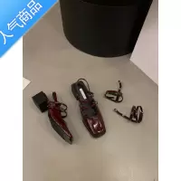 SUNTEK包头凉鞋女款夏季配裙子百搭法式透气单鞋一字扣酒红色夏款高跟鞋