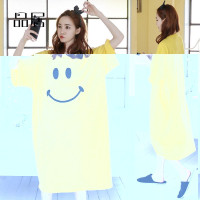 夏季韩版大码宽松长款短袖睡裙女连衣裙过膝黄色休闲长裙