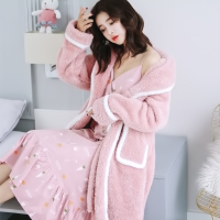 睡衣女冬法兰绒睡袍秋冬长袖加厚珊瑚绒睡衣浴袍加长款睡裙两件套