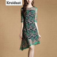 YIBUSHENG2022季新款棉麻宽松大码女装装遮肚短袖显瘦中长款绣花连衣裙