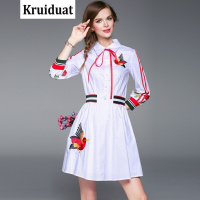 Kruidvat2017春季女装新款棉重工绣花翻领大摆连衣裙1703811B075