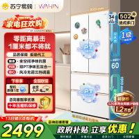 [美的出品]华凌520 超薄零嵌法式多门冷藏冷冻双净味一级能效家用大容量风冷无霜电冰箱 HR-520WUFPZ雾隐白