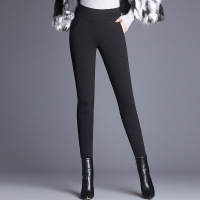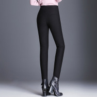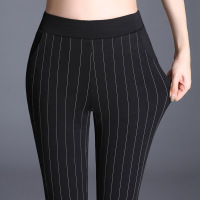 冬加绒羽绒棉裤打底女外穿加厚条纹小脚裤高腰显瘦铅笔裤子大黑色