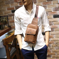 浅娜芬20新款胸包男单肩斜跨休闲小胸包韩版潮疯马皮男士运动背包