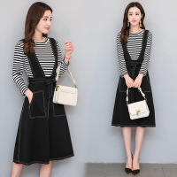 顺崇2018背带裙两件套裙子夏装新款女装套装裙春春季长袖吊带连衣裙女
