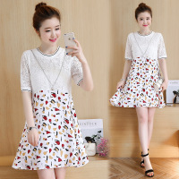 薇侣2017实拍新款长袖胖mm蕾丝雪纺连衣裙配项链大量现货